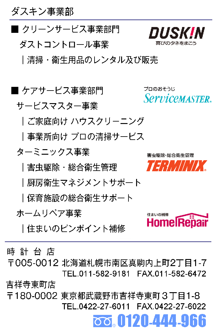 プロのお掃除から害虫獣の駆除、プロの衛生管理まで幅広く対応しております。ご家庭と、飲食店・販売店・福祉施設など、多種多様なニーズにご対応します。