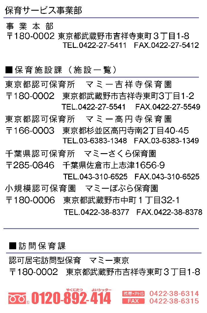 当社では、認可保育園を直接運営しております。ご入園をご希望される方は、自治体に申請をお願いします。